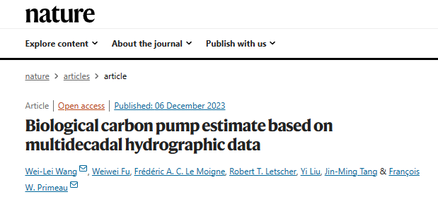 Nature还将择期发表F. Primeau和王为磊教授受邀撰写的研究简报“Oceans can capture more carbon dioxide than previously thought”,该简报为对正文的科普性介绍。